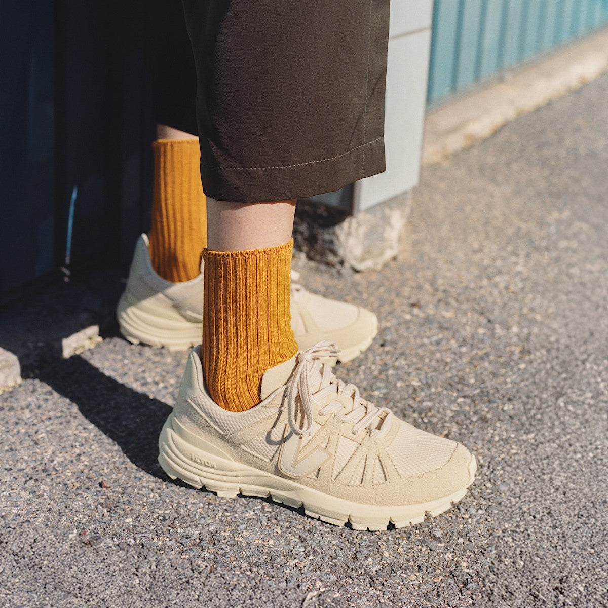 The pair features a Vibram sole. Co-developed with VEJA, this sole combines eco‑friendly materials, like Amazon rubber or sugar‑cane based E.V.A., with Vibram’s cutting‑edge technology.