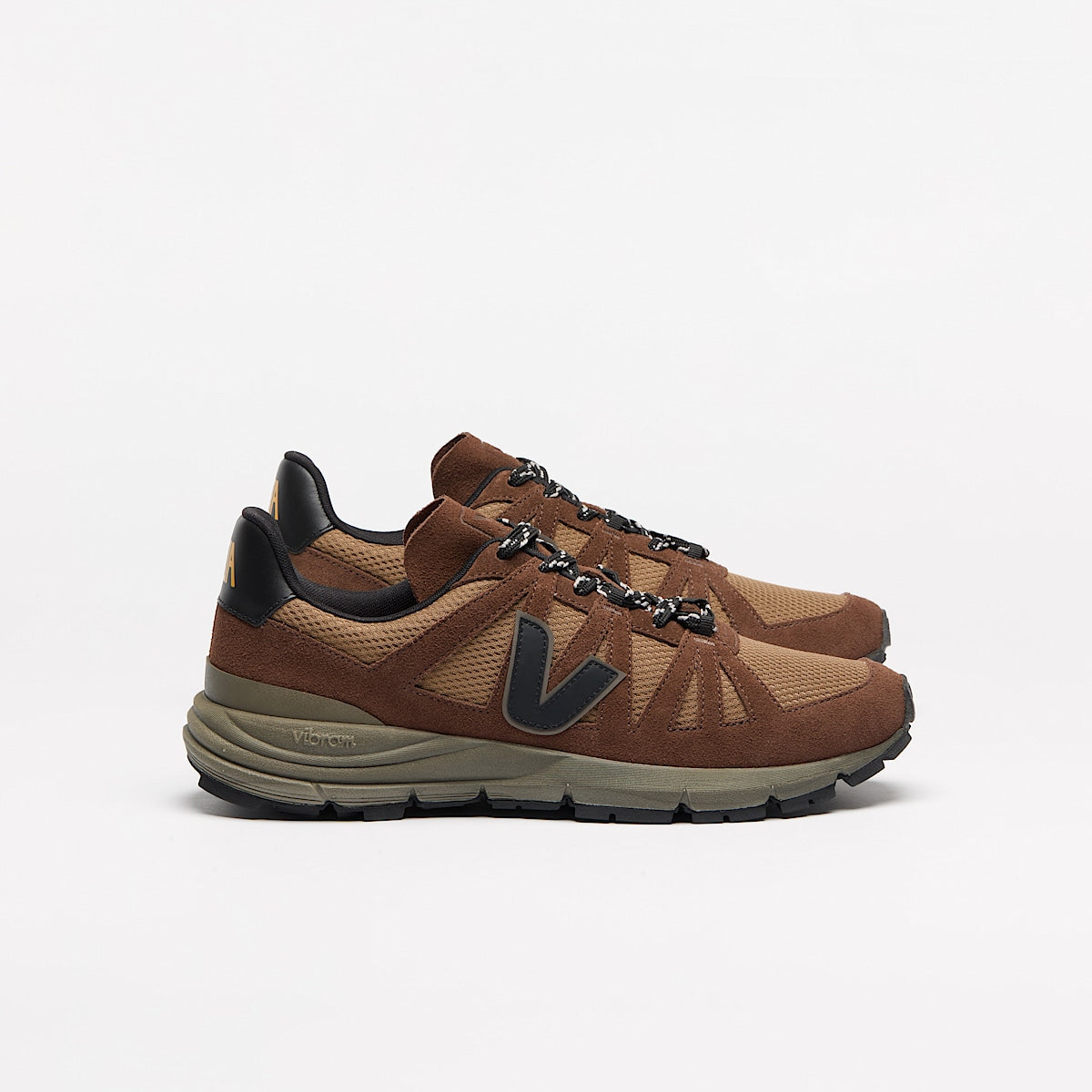 The pair features a Vibram sole. Co-developed with VEJA, this sole merges ecological materials, such as Amazonian rubber and sugarcane-based E.V.A., with Vibram’s cutting-edge technology.